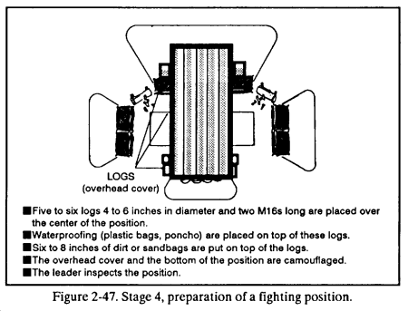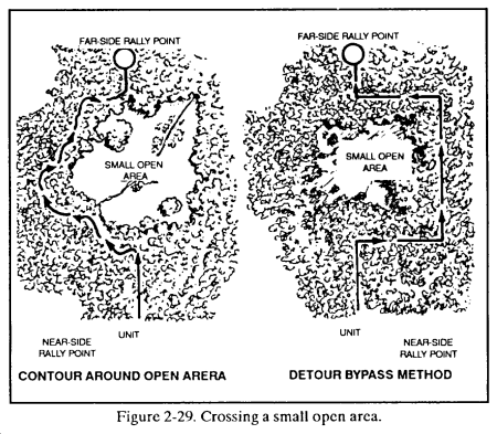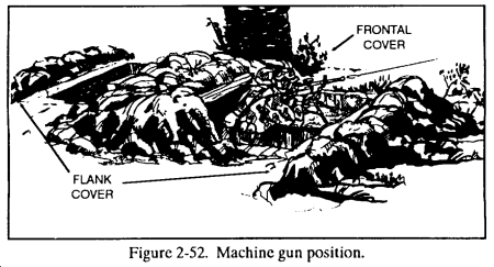 (b) Cover and concealment. The leader looks for terrain that will protect him from direct and indirect fires (cover) and from aerial and ground observation (concealment).